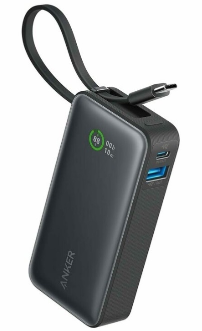 Acumulator extern Anker Nano 545, 10000 mAh, 30W, USB-C, USB-A, cablu USB-C incorporat, Negru