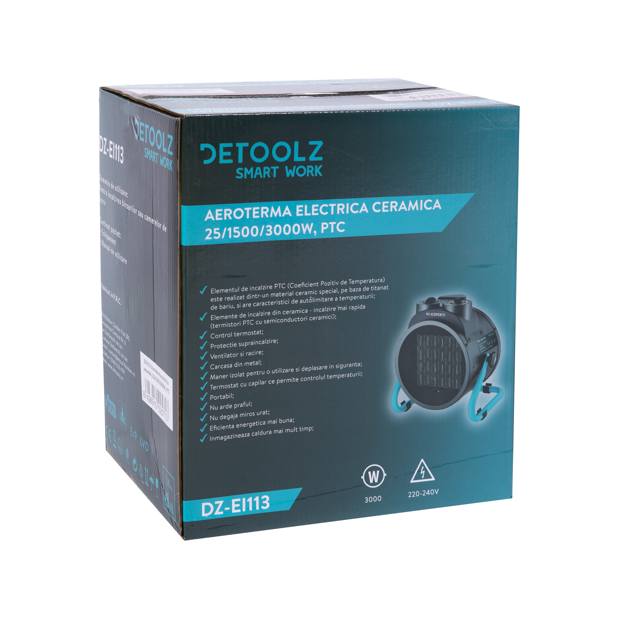 Aeroterma electrica ceramica, 25/1500/3000W, PTC