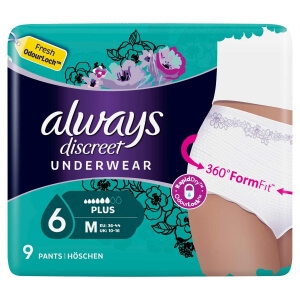 Always Discreet Chilot absorbant 360 FormFit marimea M, 6 picaturi, 9 buc
