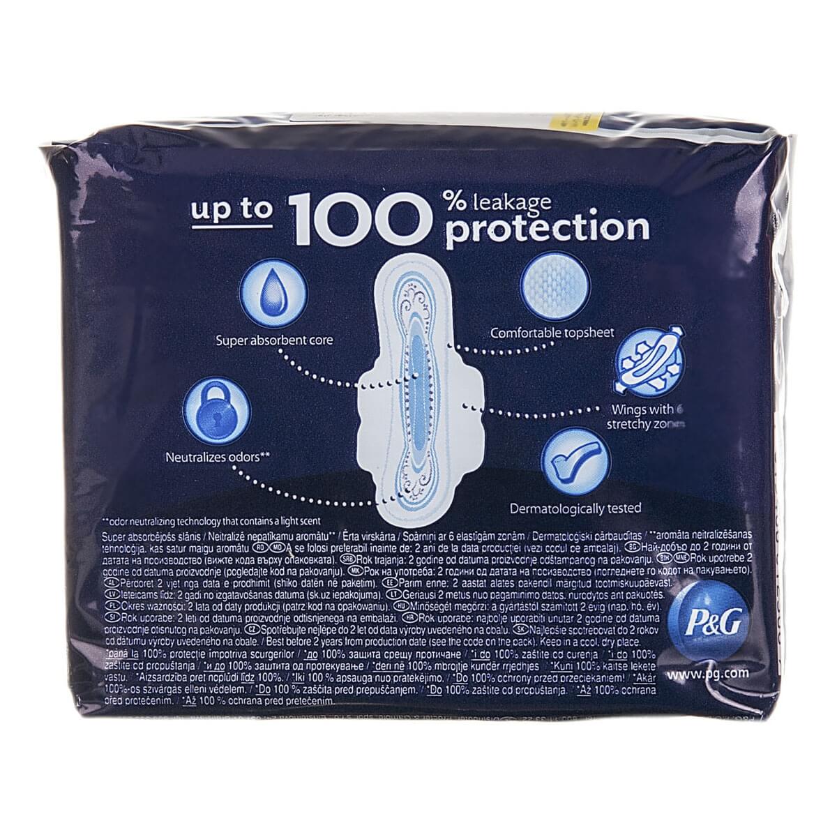 - Aripioare flexibile (Flexi-Wings) ce acopera o mare parte a slipului si se adapteaza miscarilor dumneavoastra fara ca absorbantul sa se desprinda.