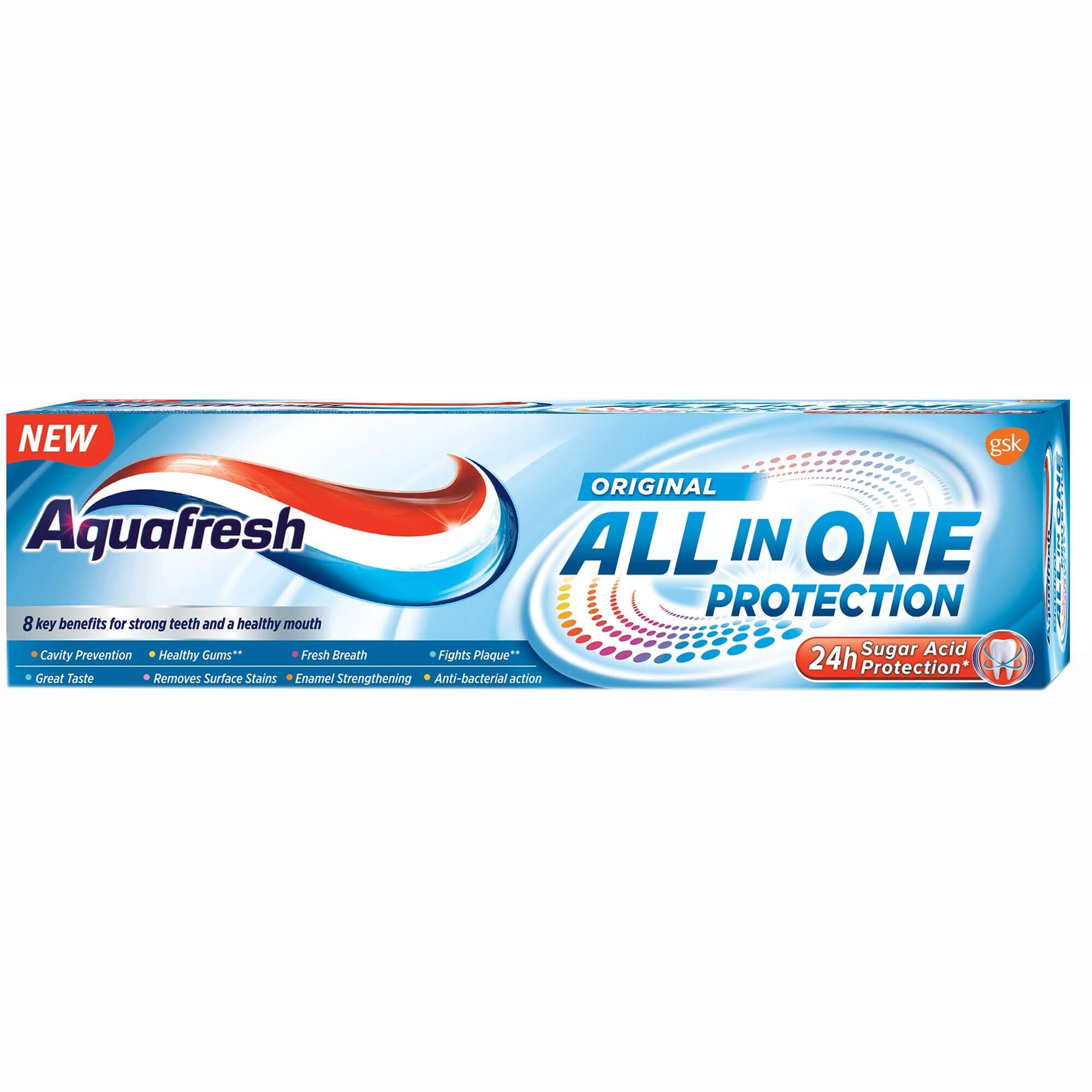 • Ce este: Aquafresh All in One Protection Original este o pasta de dinti special conceputa pentru a-ti oferi o ingrijire orala completa si protectie care dureaza.