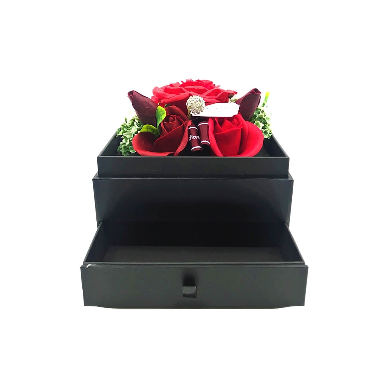 Aranjament trandafiri sapun in cutie cu sertar