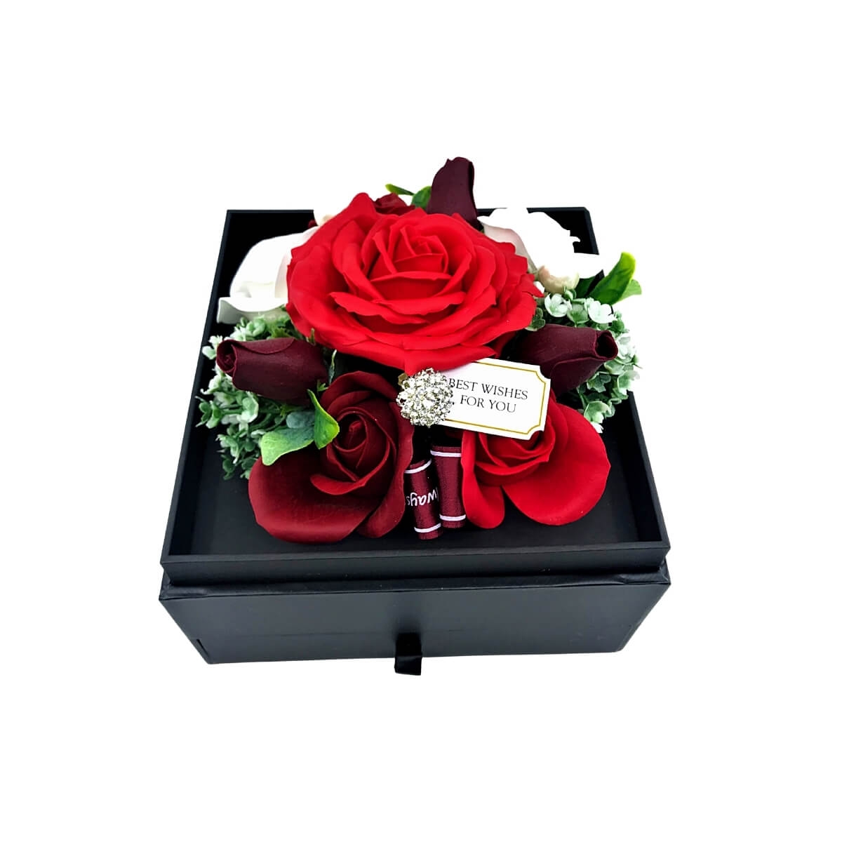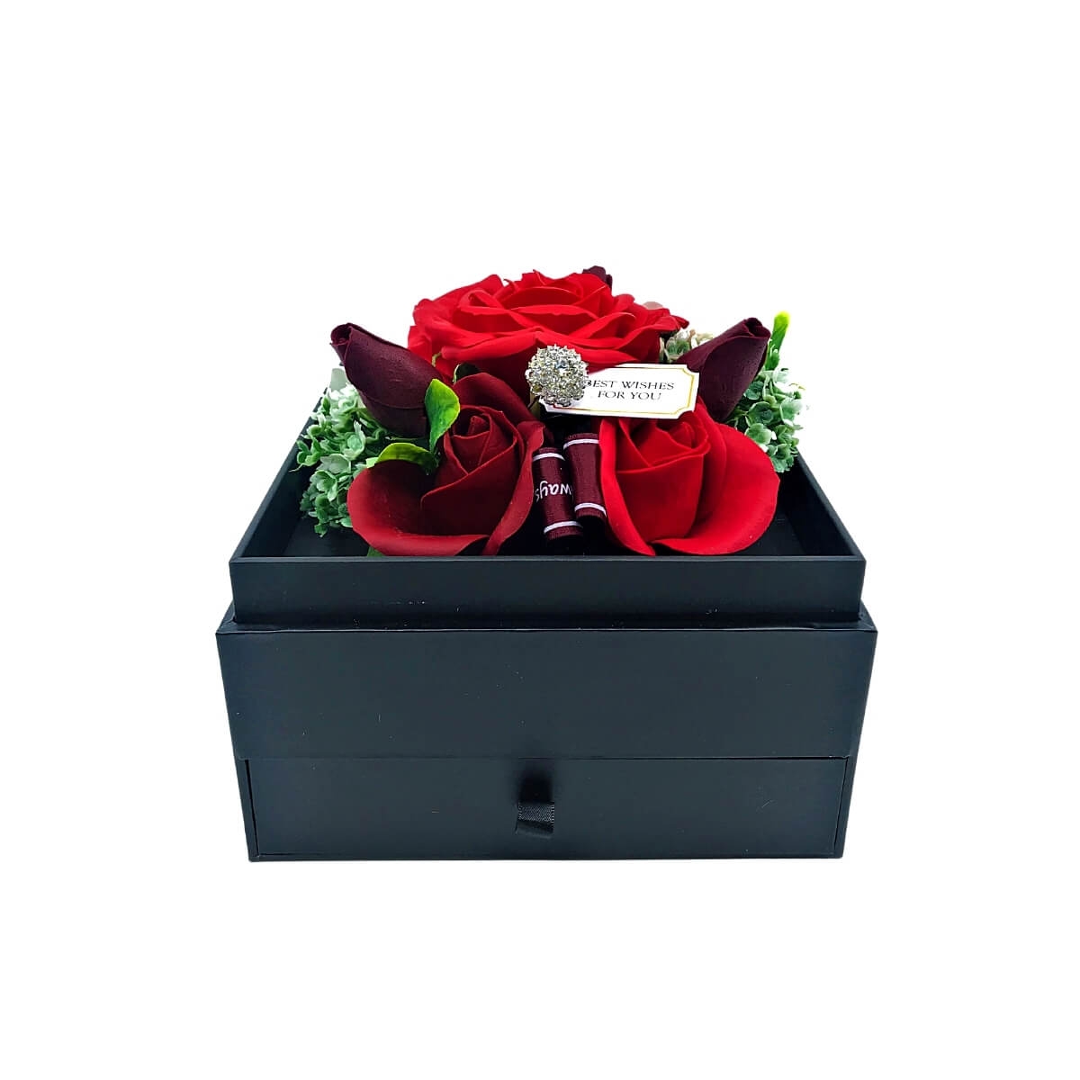Aranjament trandafir sapun in cutie cu sertar