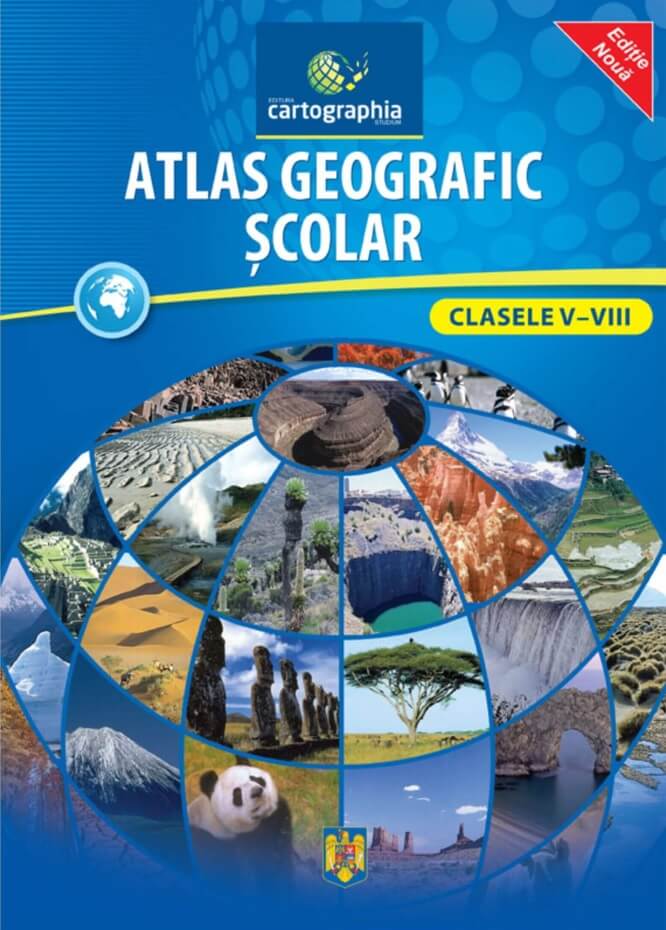 Material didactic complementar timp de patru ani la orele de geografie, cu 104 pagini si peste 130 de harti. Va oferim noul Atlas geografic scolar editat special pentru elevii claselor V-VIII. Atlasul ofera un suport deosebit din punct de vedere calitativ si de continut, atat la orele de geografie, cat si pentru studiul individual al elevilor, prezentand caracteristici de exceptie: 104 de pagini, cu peste 130 de harti si peste 30 de reprezentari grafice si imagini. Conceptie corespunzatoare programelor scolare. Realizare grafica inovatoare, prin evidentierea diferitelor capitole, pentru gasirea mai usoara a hartilor cautate. O serie bogata de harti tematice de geografia Romaniei. Harta Uniunii Europene, cu ilustratii. Harti tematice ale fiecarui continent si ale Pamantului. Harti referitoare la protectia mediului in Romania, Europa, Asia si in lume. Index al numelor geografice, pentru facilitarea folosirii atlasului. Informatii auxiliare pentru dezvoltarea culturii generale. Hartile din atlas corespund hartilor murale editate de firma noastra, facand astfel posibila utilizarea optima a atlasului la orele de geografie.