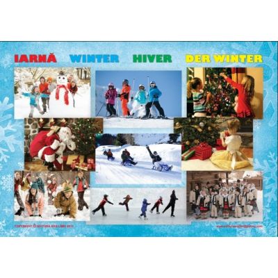 Setul contine 4 planse de dimensiune 50x70 cm, tiparite pe carton de 300g/mp, plastifiate lucios, contin agatatori.Specificatii