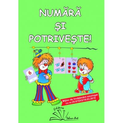 “Numara si potriveste!” contine jetoane cu cifre si numere si jetoane cu cantitatea de elemente corespunzatoare acestora. Cu ajutorul lor, copiii vor recunoaste si numi cifrele de la 1 la 9, vor invata numeralul, vor asocia o cifra/numar cu cantitatea de elemente corespunzatoare, vor compara cantitati, vor aseza cifrele/numerele in ordine crescatoare si descrescatoare, cu sot si fara sot. Astfel, copiii vor intelege ca cifra este semnul grafic al unui numar de elemente de la zero la noua. Numarul reprezinta cantitatea de elemente de acelasi fel. De exemplu, numarul 10 se scrie cu ajutorul cifrelor 1 si 0 si reprezinta numarul degetelor de la ambele maini.
