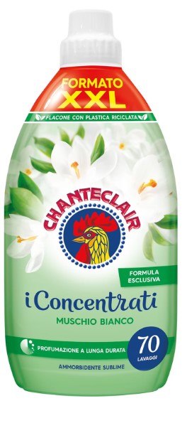 Balsamul de Rufe, Mosc Alb Chanteclair netezeste fibrele, facand hainele sa fie mai moi si mai la placute la atingere. Datorita formulei exclusive si a parfumului rafinat de lunga durata, hainele tale vor ramane proaspete zi de zi. Potrivit pentru: microfibra, bumbac, lana si casmir Parfum: Mosc Alb Produs original Italia.Specificatii