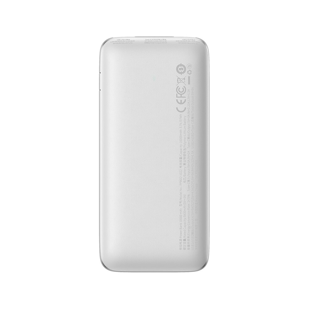 Baterie externa Baseus Bipow Pro 10.000 mAh, 2x USB-A, 1x USB-C, Incarcare rapida, cablu USB-A la USB-C inclus, 22.5 W Alb
