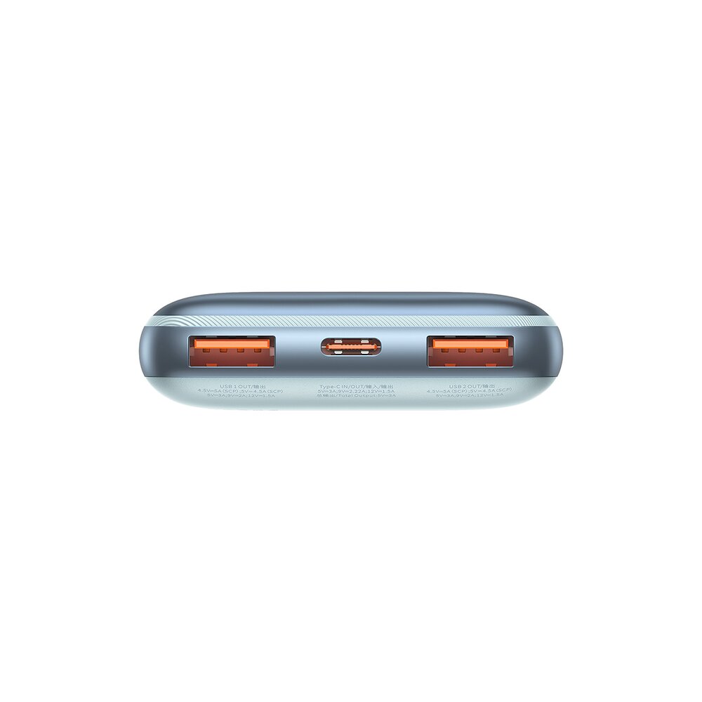 Baterie externa Baseus Bipow Pro 10.000 mAh, 2x USB-A, 1x USB-C, Incarcare rapida, cablu USB-A la USB-C inclus, 22.5 W Albastru