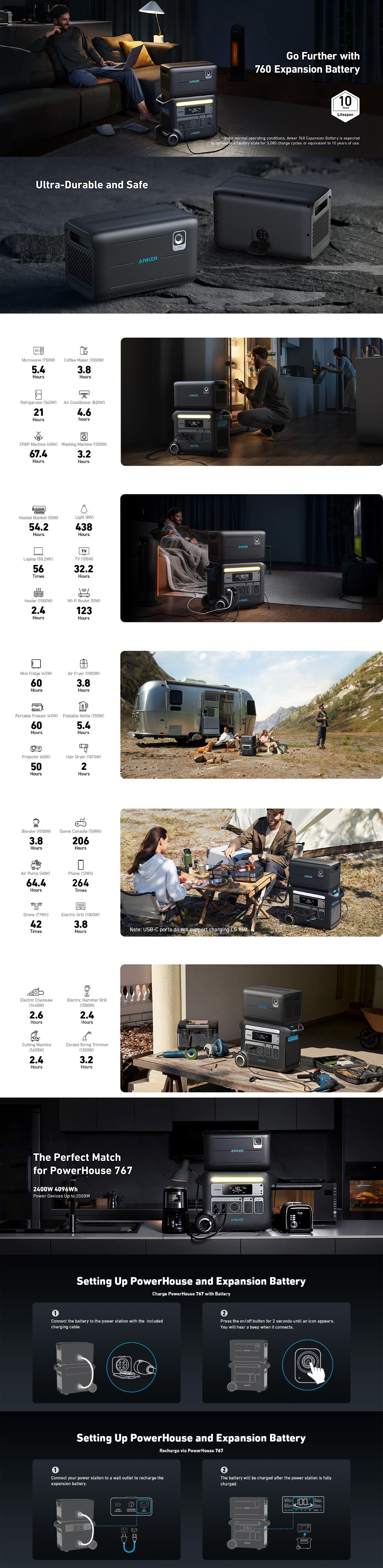 Cu tehnologia brevetata de lunga durata InfiniPower, alaturi de bateriile LiFePO4, componente electronice ultra-rezistente, un sistem inteligent de control al temperaturii care monitorizeaza temperatura de pana la 100 de ori pe secunda si un design structural rezistent la impact, bateria Anker Expansion Battery 760 este construita pentru a rezista mai mult de un deceniu, chiar si in cazul utilizarii zilnice.
