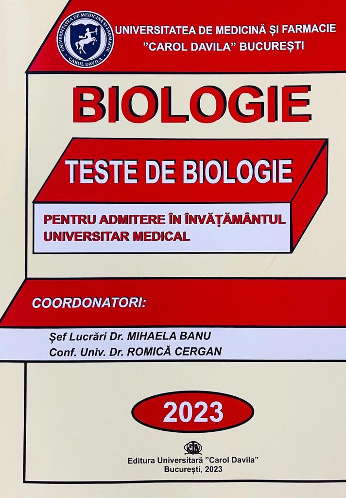 Biologie - Carol Davila. Teste de biologie pentru admiterea in invatamantul universitar medical 2023