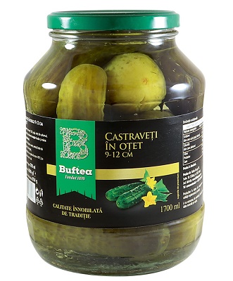 Castraveti intregi in otet 9-12 cm, 1700 ml, Buftea
