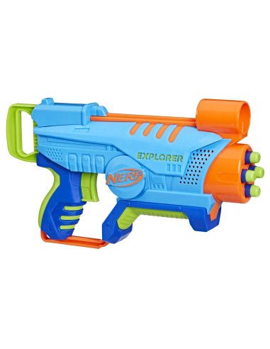 Acest blaster de jucarie Nerf Elite Jr pentru baieti si fete are un design usor de jucat astfel incat copiii sa se poata bucura de jocul captivant de sageti Nerf. Blasterul Explorer este dimensionat pentru a se potrivi confortabil in mainile mici si are un design usor care este usor de tinut si de transportat de copii in interior si in aer liber. Manerul blasterului are cea mai mica forta de tragere dintre toate blasterele Nerf asa ca este usor pentru copii sa se traga singuri inapoi. Sagetile se introduc usor in partea din fata a blasterului. Copiii pot lansa 4 sageti la rand din blasterul de jucarie Nerf Elite Jr Explorer din spate si pot privi prin vizorul supradimensionat in timp ce arunca sageti. Include blaster si 8 sageti.
