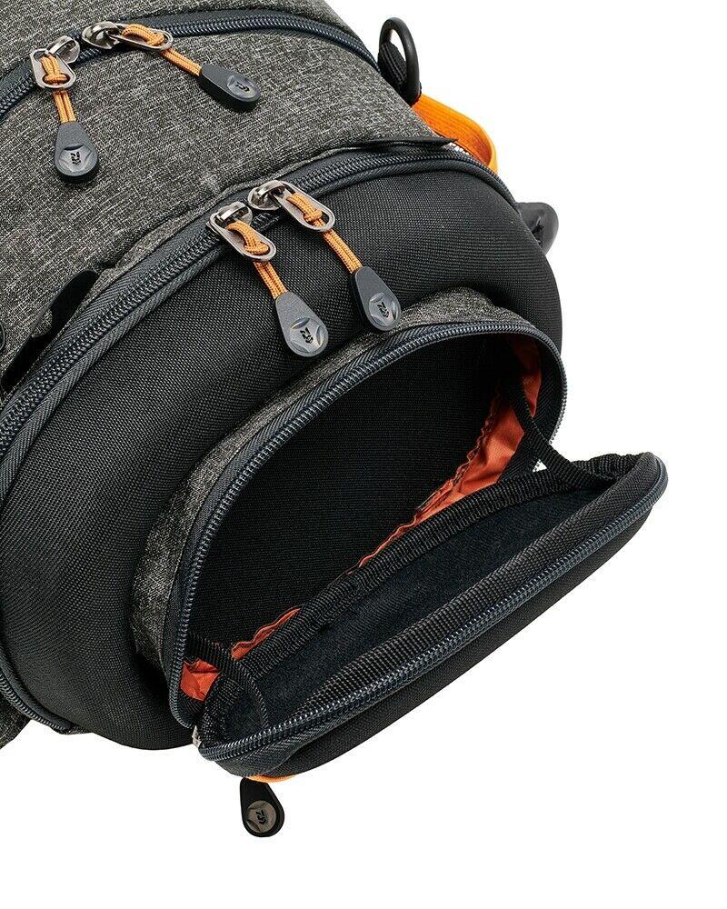 Perfectă pentru pescuitul activ, această borsetă multicompartimentată, combină spații soft și hard (3), pentru cutii mici și accesorii. Fiecare are un amestec de pungi interne și pad de spumă pentru depozitare (principal) pentru uscarea nălucilor și a muștelor. De asemenea, este prezentat un zinger retractabil încorporat și două inele întărite pentru alte suplimente. Două buzunare laterale din plasă permit depozitarea diferitelor accesorii mai voluminoase. O curea confortabilă, ajustabilă pentru talie și o curea detașabilă pentru umăr din neopren asigură o purtare sigură și ușoară.