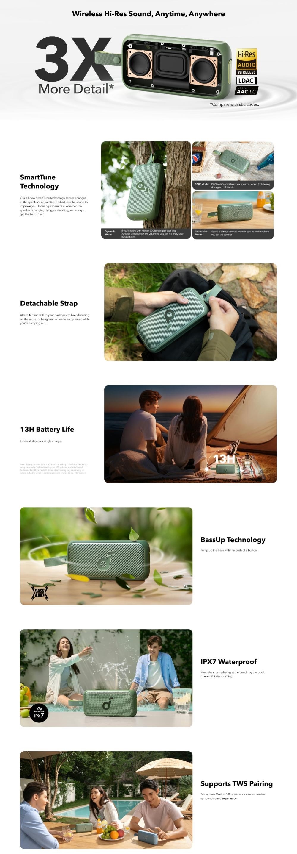 Boxa portabila Anker SoundCore Motion 300, 30W, Wireless Hi-Res Audio, BassUp, SmartTune, IPX7 Verde