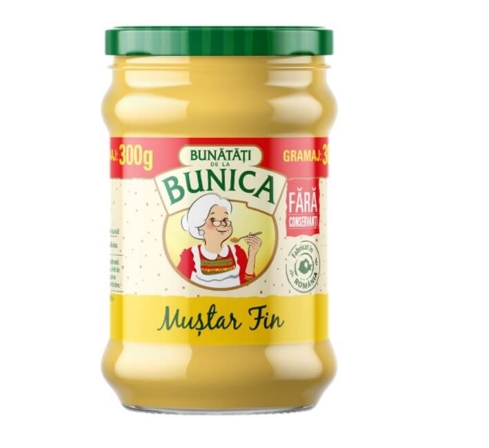 Mustar fin Bunatati de la Bunica, realizat exclusiv din boabe de mustar intr-o concentratie de 18%.