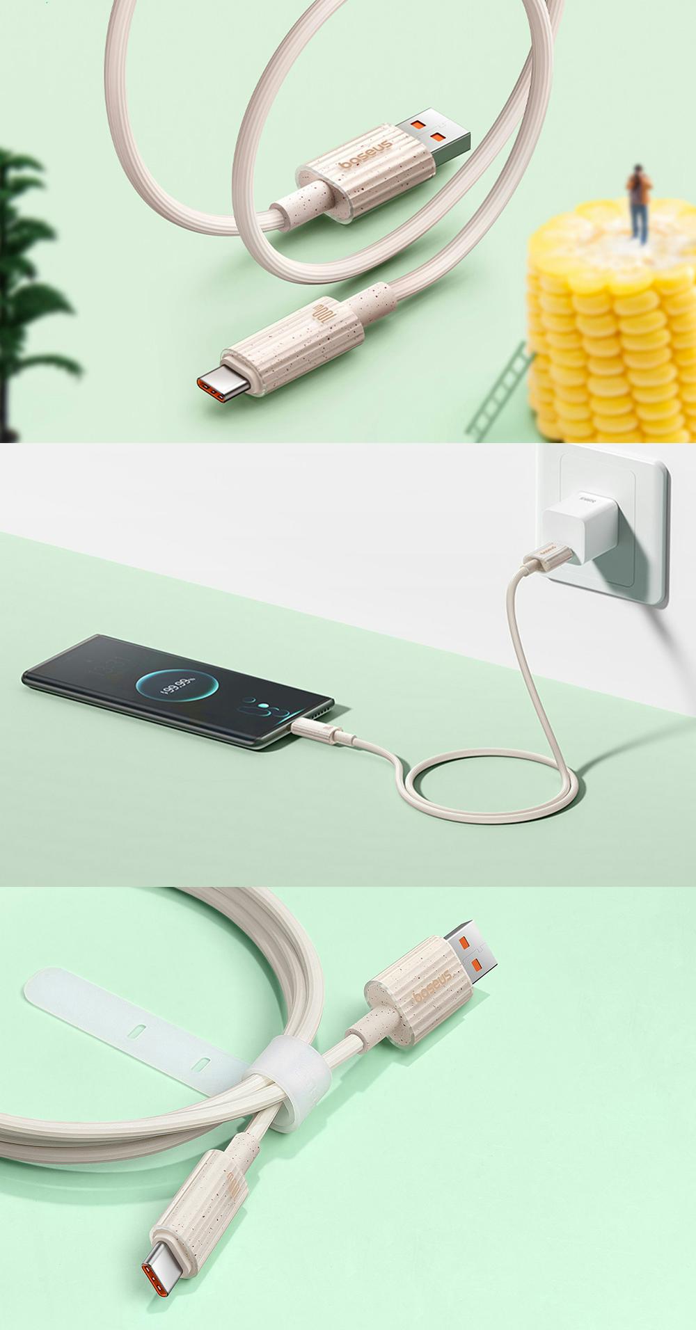 Cablul a fost creat din plastic PC si finisat cu 42% materiale biodegradabile - plasticul a fost inlocuit cu amidon de porumb. De asemenea, a trecut o serie de teste de durabilitate, facandu-l rezistent la indoire. In plus, cu lungimea sa de 1 m, va va facilita incarcarea echipamentului in locuri unde priza este departe. De asemenea, il puteti utiliza convenabil in timpul incarcarii. In plus, o curea speciala faciliteaza depozitarea produsului si il protejeaza de incurcare.