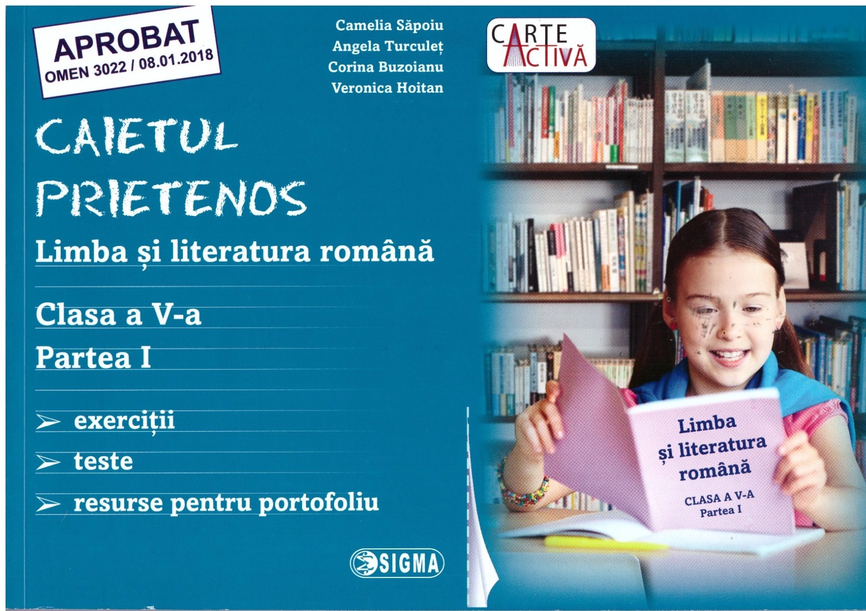 – In partea stanga a fiecarei pagini sunt prezente sarcini de lucru concepute pe baza programei de clasa a V-a, grupate in primul rand pe domeniile de continut specifice acesteia, dar si pe unitatile de invatare proprii manualului de Limba si literatura romana, editura Sigma. Insa, prin diversitatea activitatilor de invatare propuse si prin permanenta raportare la competentele generale si specifice urmarite in programa, acesta poate deveni un material util de lucru pentru orice copil.