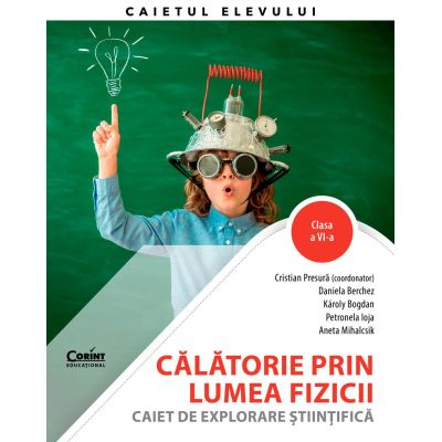 Calatorie prin lumea fizicii. Caiet clasa a 6-a - Cristian Presura Realizat special pentru a insoti manualul de Fizica pentru clasa a VI-a Calatorie prin lumea fizicii. Caiet de explorare stiintifica pentru clasa a VI-a le este util elevilor care vor sa aprofundeze sau sa sedimenteze lucrurile invatate in cadrul orelor de curs. Caietul contine exercitii adaptate varstei lor si lectiei corespunzatoare de fizica exercitii clasice cuvinte incrucisate rebusuri etc. Fiecare lectie din manual este reprezentata in acest caiet iar tipurile de exercitii alterneaza in asa fel incat lucrarea sa devina cat mai atractiva. Specific acestei discipline caietul elevului contine si experimente pe care elevii le pot face in laborator sau acasa si face adesea apel la metoda investigatiei folosita frecvent in manual. Provocarile pe care caietul le contine vor ajuta elevii sa se apropie intr-un mod prietenos de aceasta frumoasa si interesanta disciplina.Specificatii