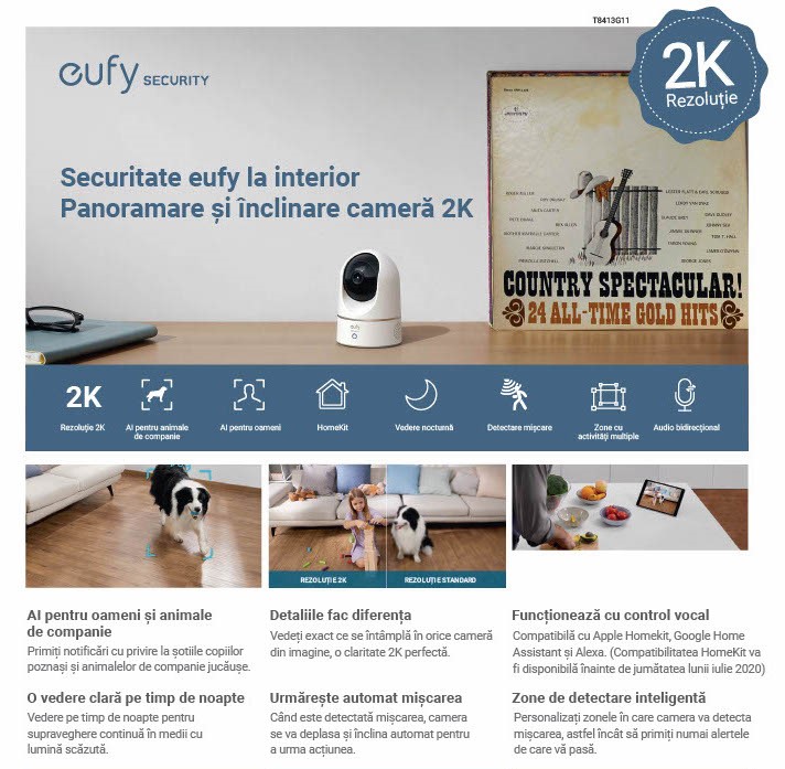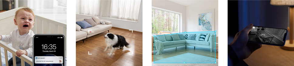 Camera de supraveghere eufyIP Pan/Tilt este dotata cu inteligenta artificiala care determina in timp real daca in zona este prezent un om sau un animal de companie si inregistreaza numai atunci cand are loc un eveniment de interes.