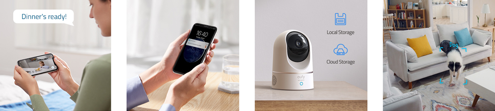 Conectati camera de supraveghere eufyCam IP Pan/Tilt la Apple HomeKit, Google Assistant sau Amazon Alexa pentru control complet asupra supravegherii.