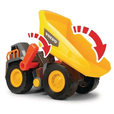 Basculanta Volvo este dotata cu sunete si lumini. Cate 3 efecte sonore si luminoase sunt prezentae in functie de greutatea cu care este incarcat camionul,. Basculanta are o dimensiune de 30 cm si este fabricata din materiale de calitate.