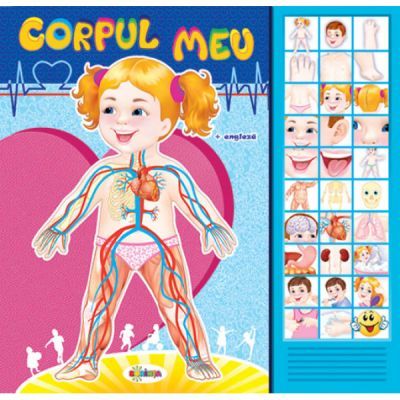 Micii curiosi vor putea da pagina, apasa pe butoane si urmari actiunea in frumoasele ilustratii, invatand in acelasi timp parti ale corpului omenesc.