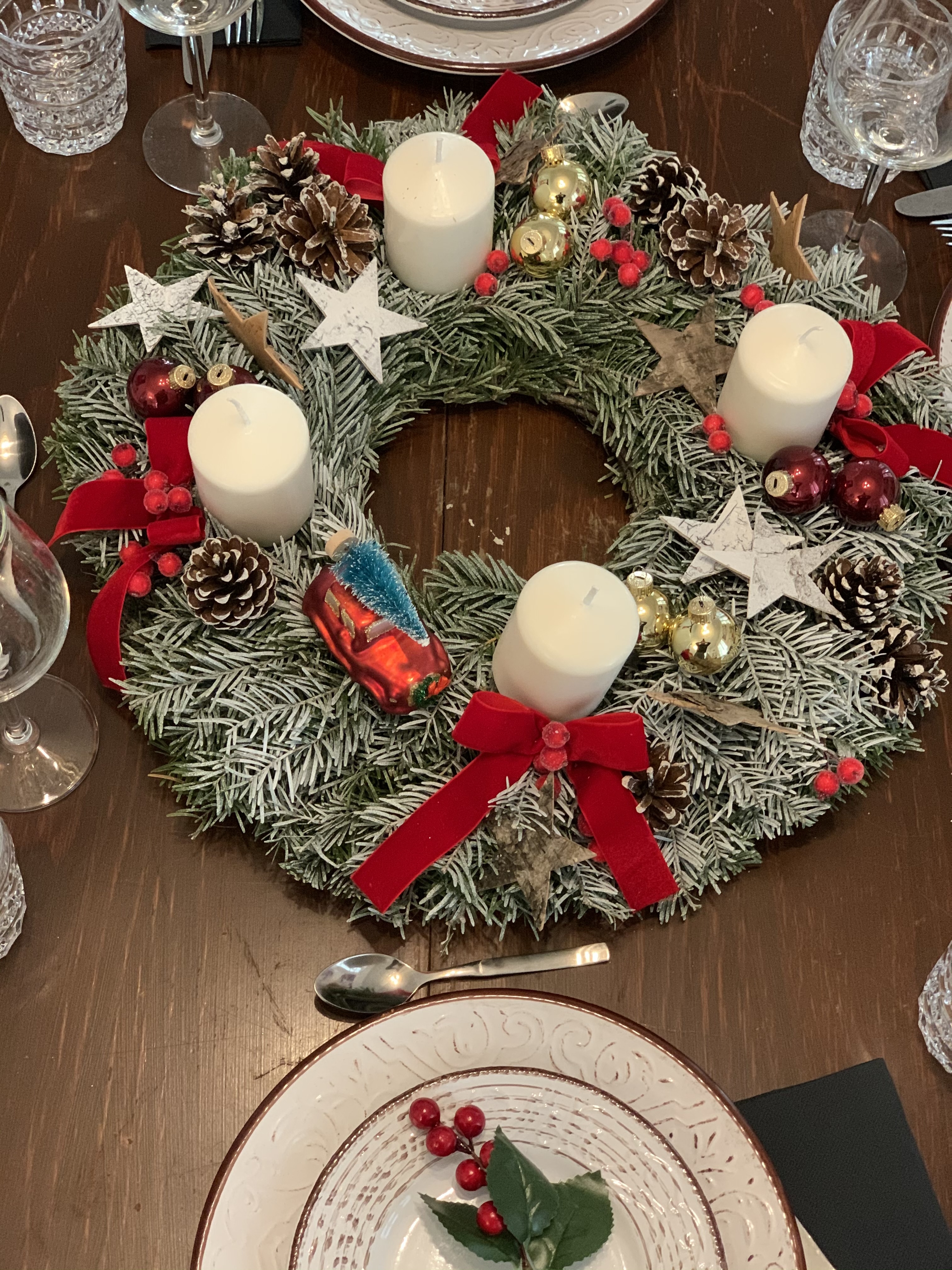 Este un aranjament superb pentru masa de Craciun! L-am pus deja pe masa in living si cu siguranta va ramane acolo mult timp dupa sarbatori! Este atat de frumos incat intrece si bradul!