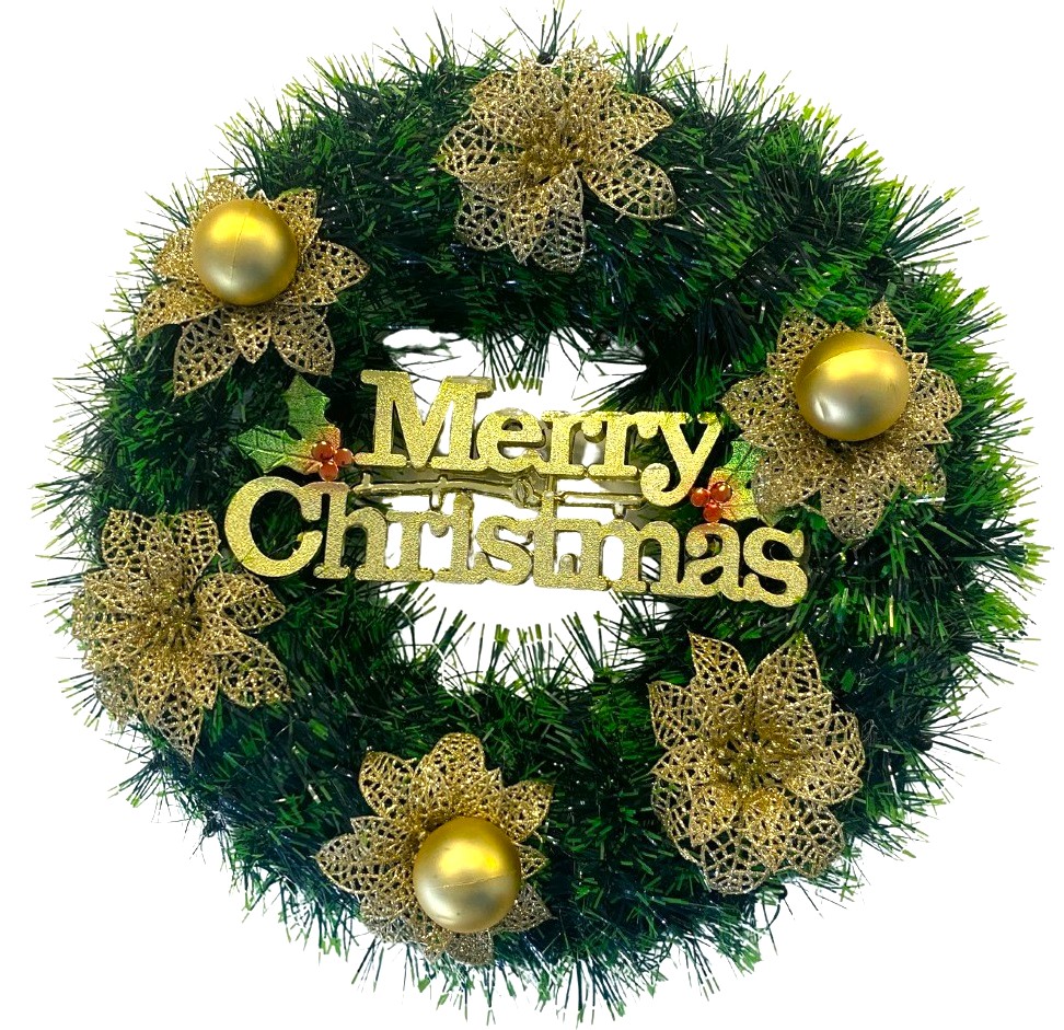 Coronita Craciun Merry Christmas verde-auriu, 45 cm