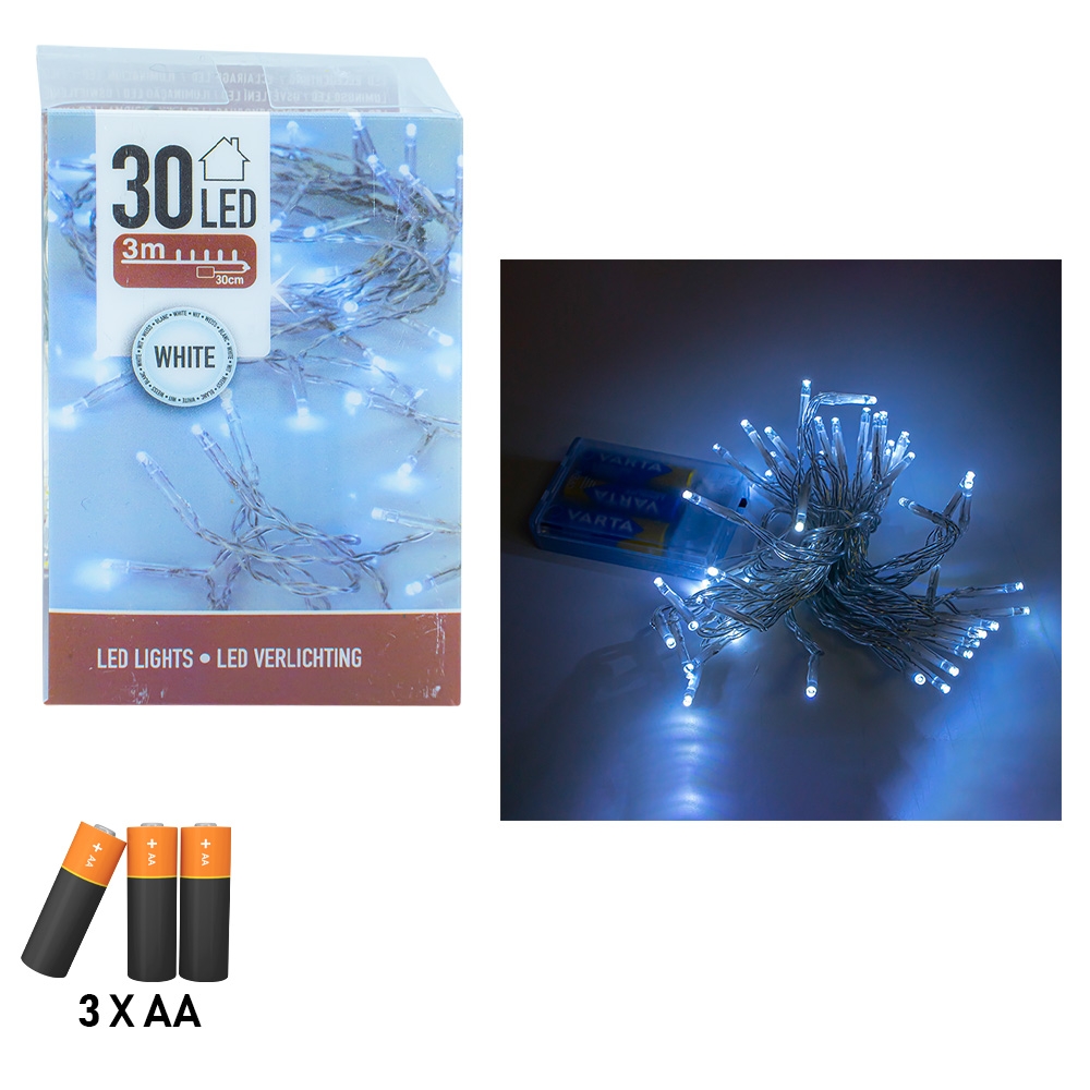 Instalatie Cu Baterii, 30 Led, Alb/Rece