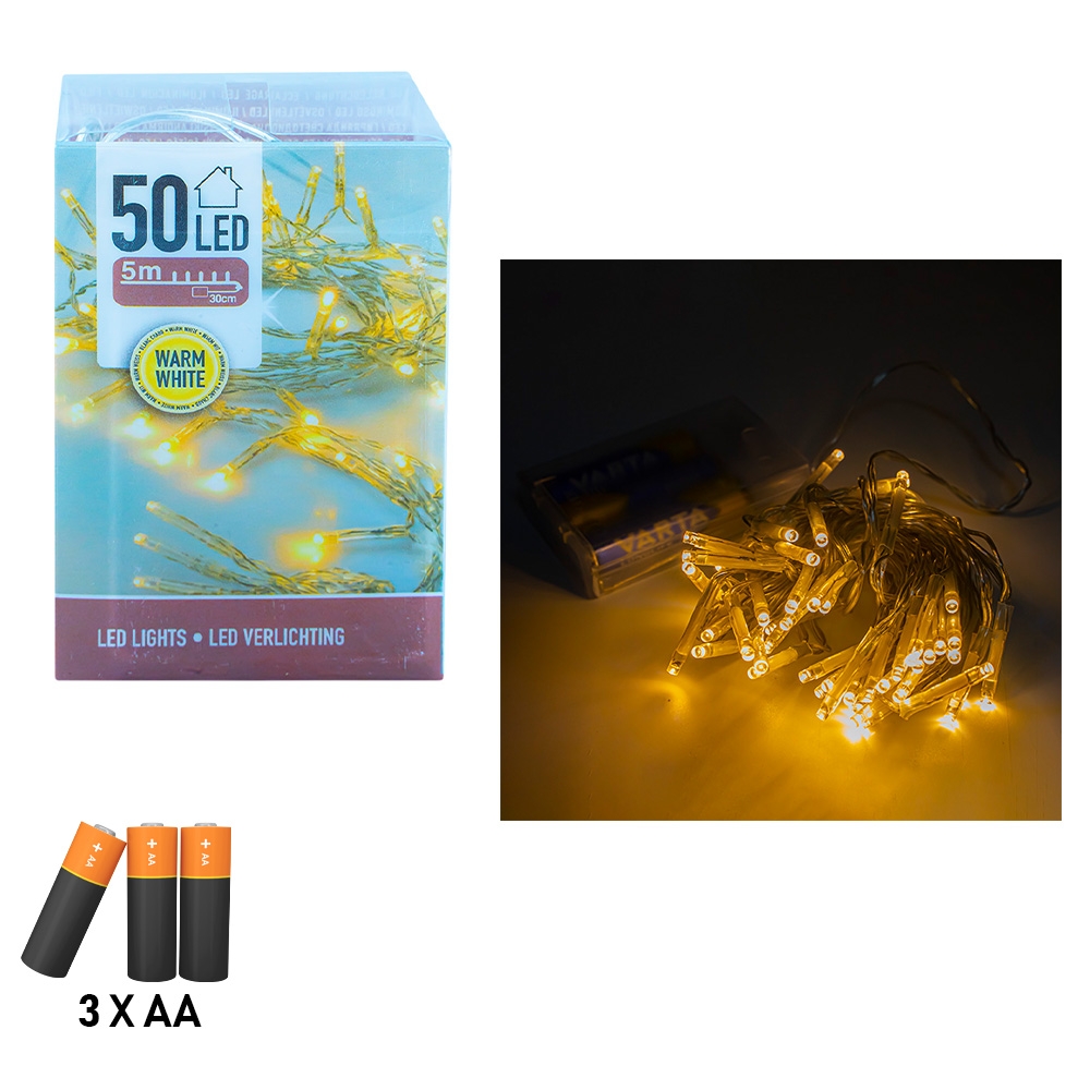 Instalatie Cu Baterii, 50 Led, Alb/Cald