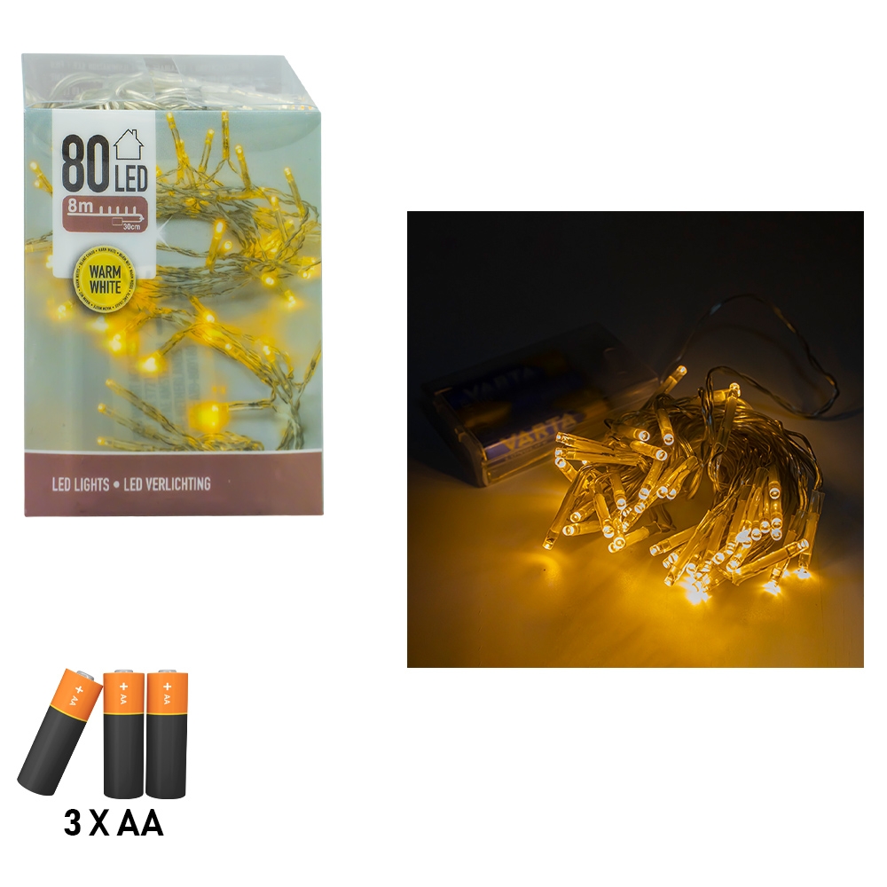 Instalatie Cu Baterii, 80 Led, Alb/Cald