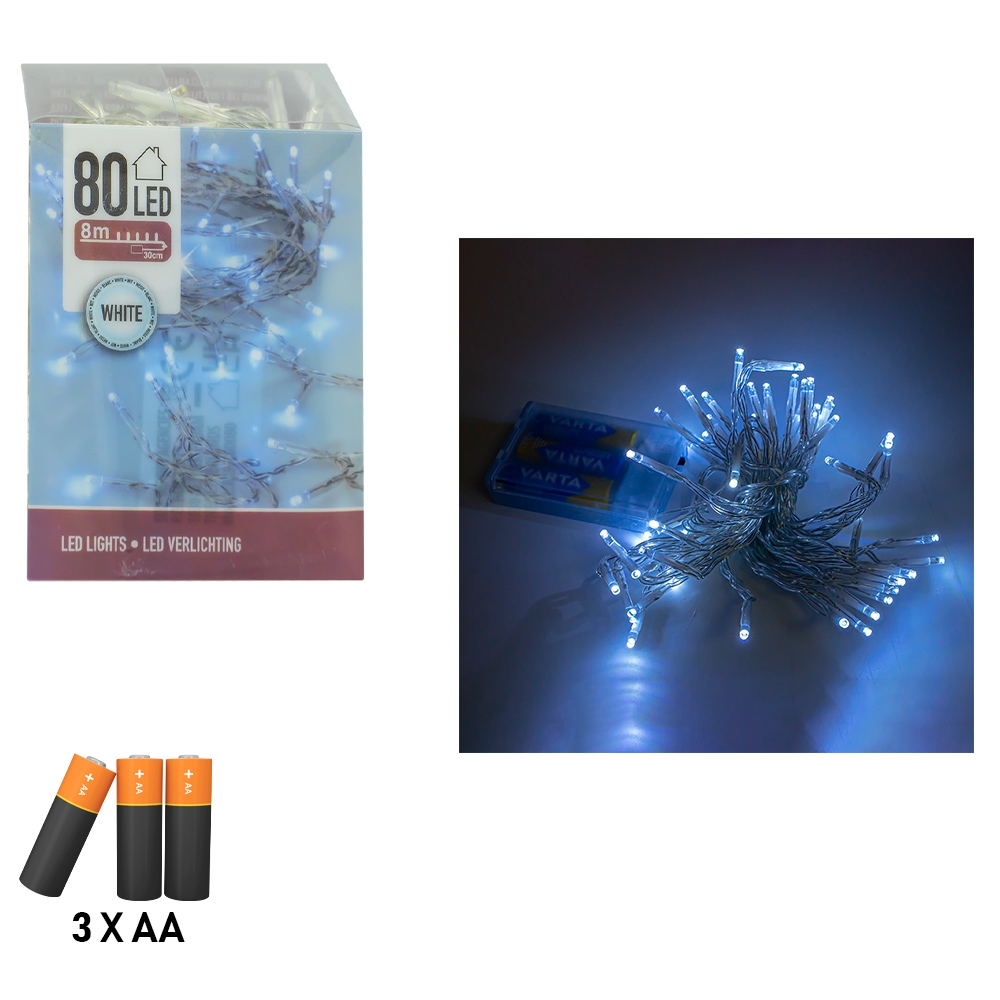 Instalatie Cu Baterii, 80 Led, Alb/Rece