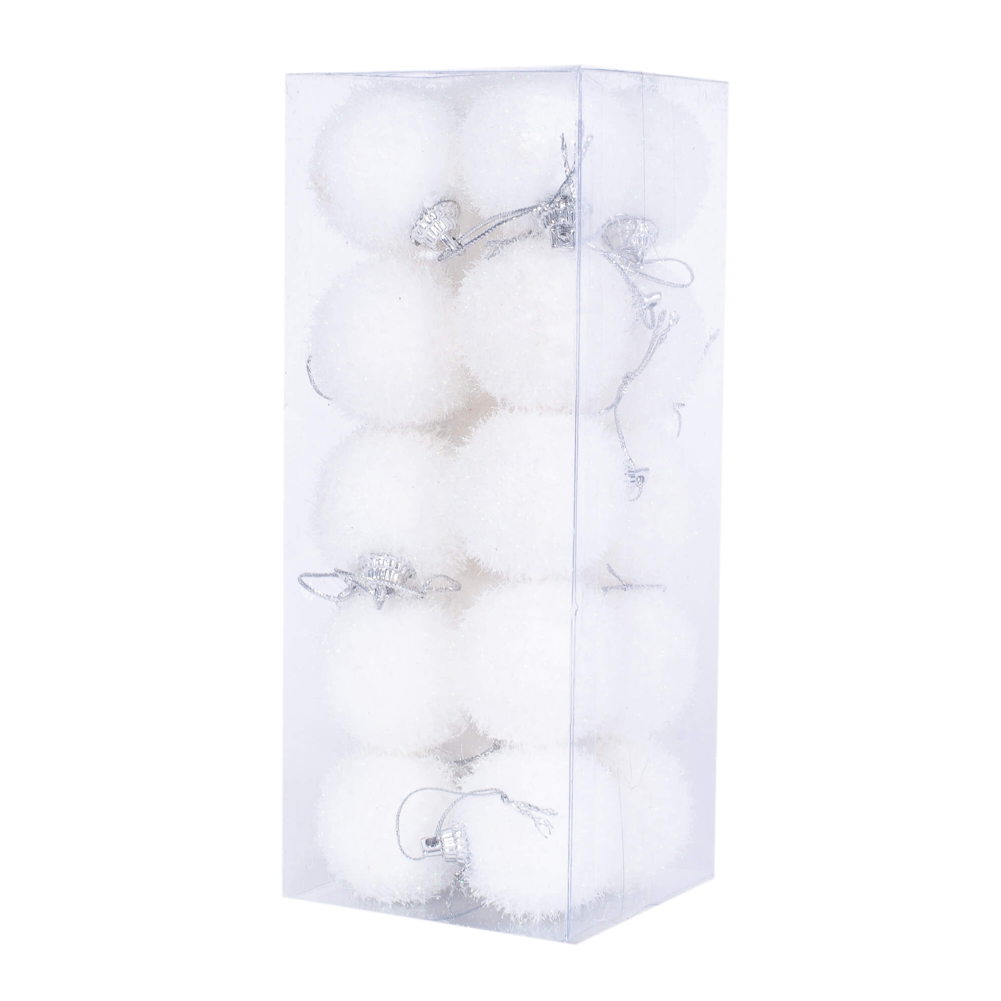 Setul contine 20 de globuri, de culoarea alba, cu diametrul de 4 cm, ambalate intr-o cutie transparenta in forma dreptunghiulara. Acest mod de ambalare, pe langa faptul ca este foarte practic, ne duce cu gandul la magia sarbatorilor si la traditia de a primi si a oferi cadouri. Astfel, acest set de globuri poate fi oferit cadou unei persoane dragi, nemaifiind necesara ambalarea suplimentara sau poate infrumuseta bradul dumneavoastra de Craciun.