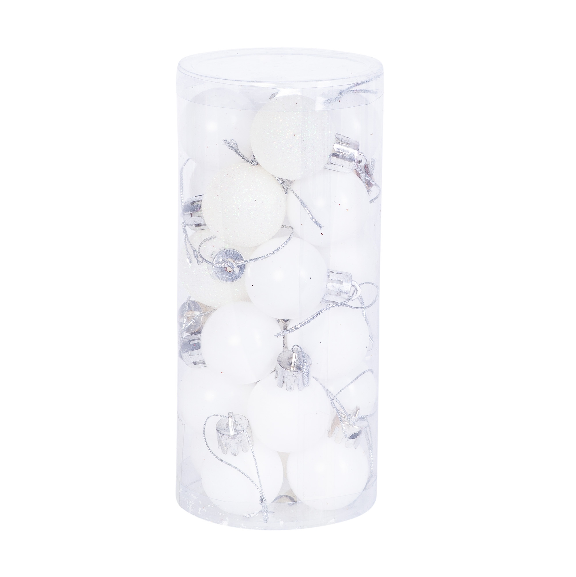 Setul contine 24 globuri, de culoarea zapezii, cu diametrul de 3 cm, ambalate intr-o cutie transparenta in forma dreptunghiulara. Acest mod de ambalare, pe langa faptul ca este foarte practic, ne duce cu gandul la magia sarbatorilor si la traditia de a primi si a oferi cadouri. Astfel, acest set de globuri poate fi oferit cadou unei persoane dragi, nemaifiind necesara ambalarea suplimentara sau poate infrumuseta bradul dumneavoastra de Craciun.