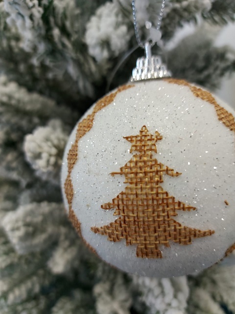 Set 12 globuri albe model brad maro 8 cm