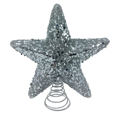 ornament pentru bradul de Craciun, varf, in forma de stea, de culoare argintieSpecificatii