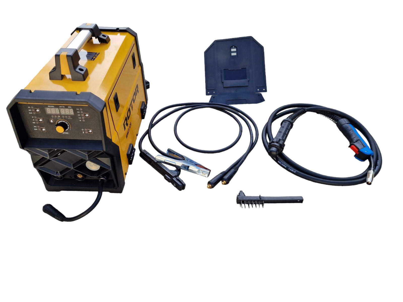| Contine | masca, cleste de masa+cleste de sudura, regulator amperaj, perie de curatat, pistol MIGMAG |