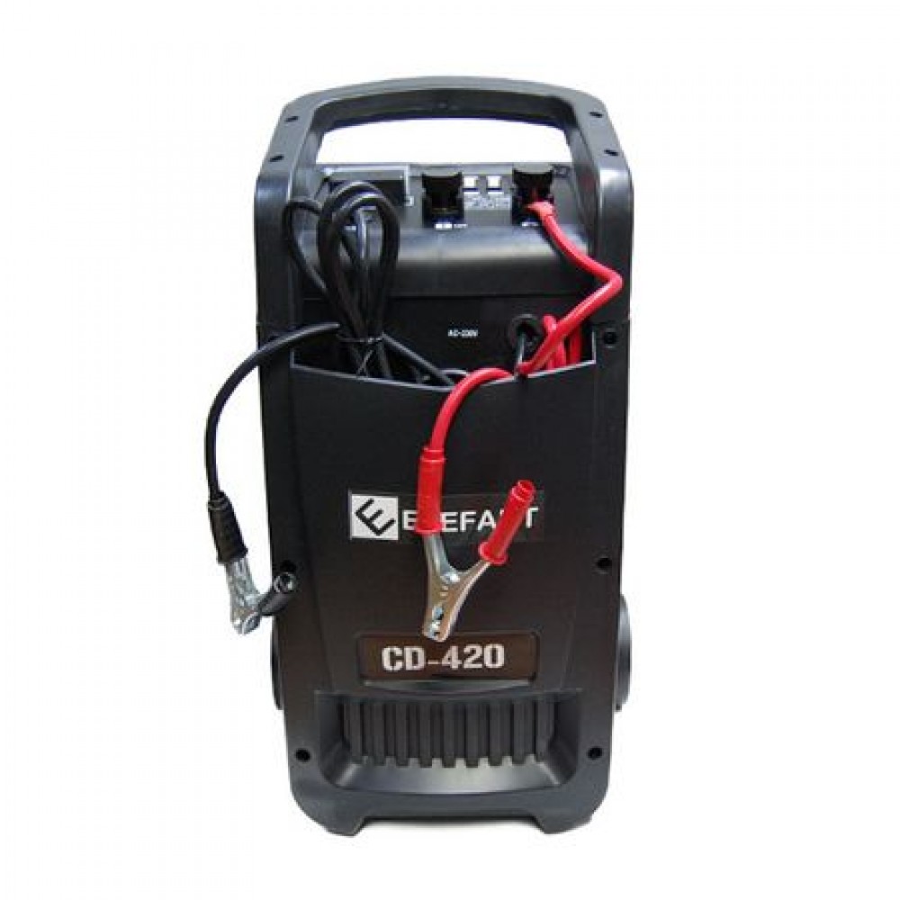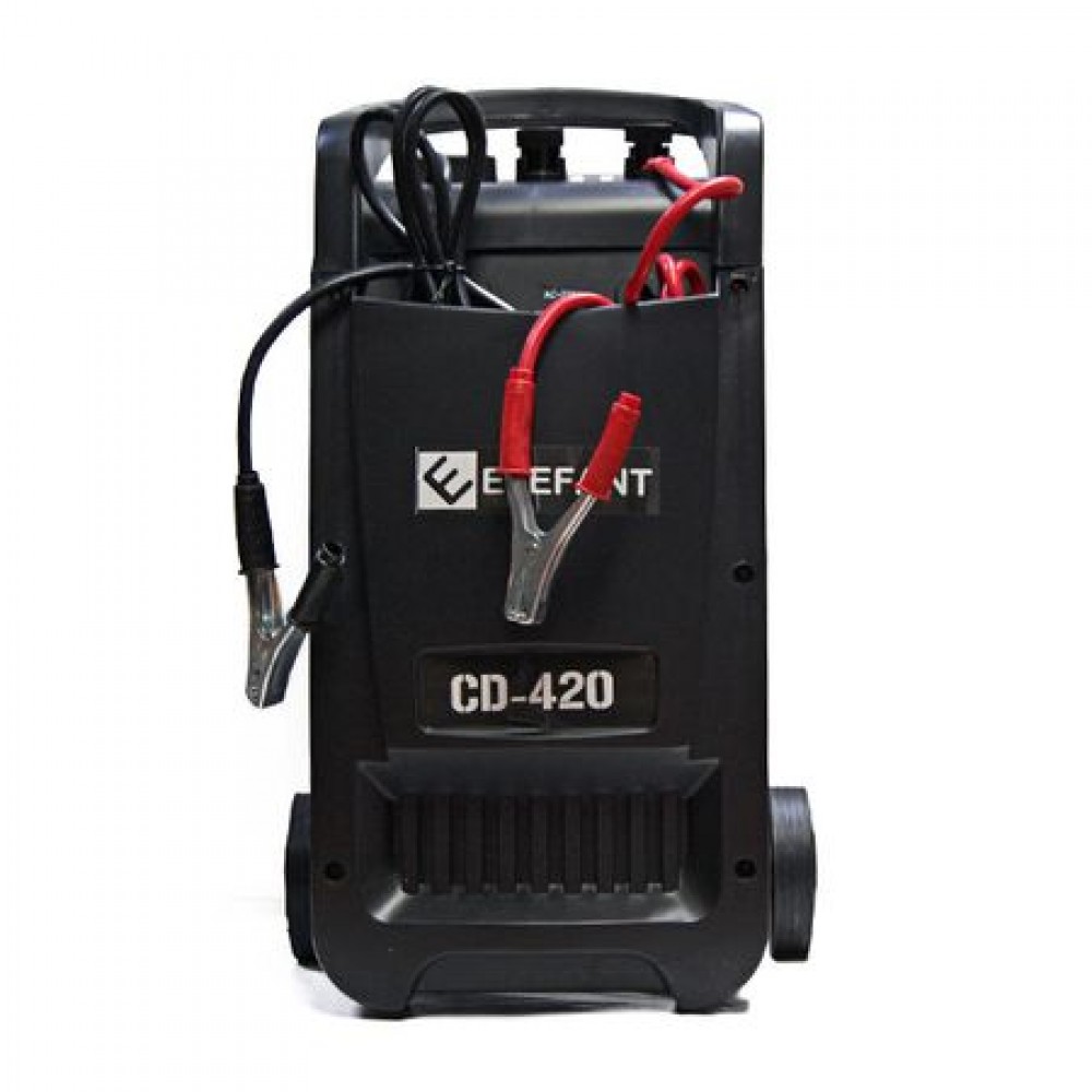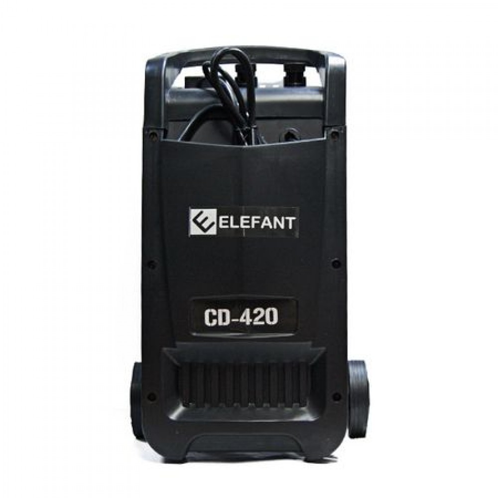ELEFANT CD-420 este un incarcator de baterii + robot de pornire auto, pentru incarcarea acumulatorilor cu plumb si pornirea rapida a motoarelor de autoturisme. Poate fi folosit atat pentru incarcarea unuia, sau mai multor acumulatori auto. Este recomandat pentru dotarea garajelor auto, a firmelor de transport, distributie etc. Aparatul este robust, foarte fiabil si pe roti.