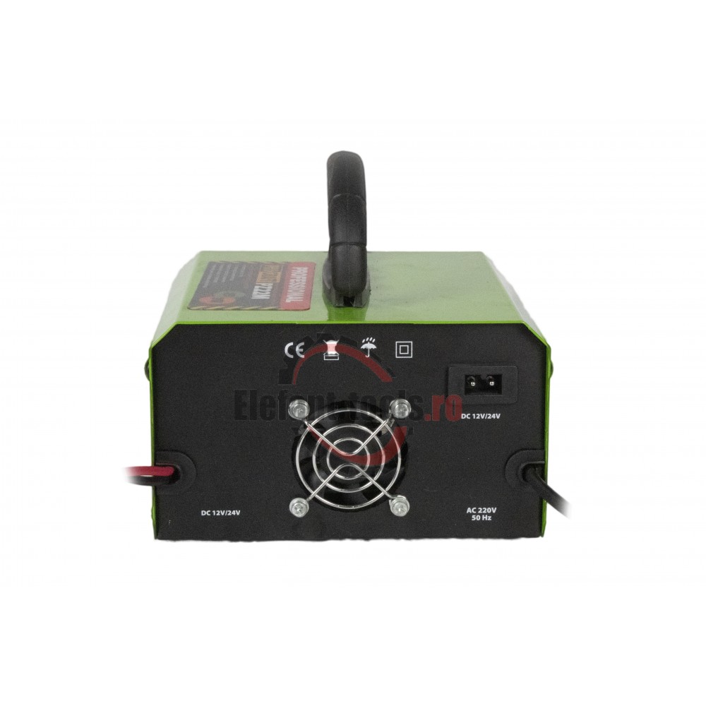 Dispozitivul este conceput pentru a incarca toate tipurile de baterii plumb-acid inclusiv asa-numitele baterii „umede” fara intretinere supape fibre de sticla absorbante si heliu. Este un incarcator invertor usor si compact portabil. Alimentarea este furnizata dintr-o retea de uz casnic de 220 V la iesire se genereaza 12-24 V. Un regulator de curent este proiectat sa functioneze cu diverse baterii. Cand se roteste de la minim la maxim viteza si intensitatea incarcarii sunt controlate. De exemplu daca puneti bateria sa se incarce peste noapte atunci ar trebui sa setati regulatorul in pozitia min bateria in acest caz se va incarca mai lent dar mai bine. Daca va grabiti si nu doriti sa asteptati mult timp puteti creste curentul de incarcare economisind astfel timp dar de multe ori nu ar trebui ss utilizati acest mod deoarece o astfel de incarcare „aseaza” bateria. Valoarea setata este afisata cu precizie pe afisajul digital.