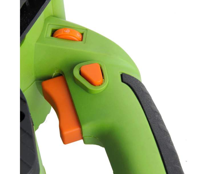 Capacul metalic articulat in stare ridicata permite macinarea cu partea superioara frontala a centurii ceea ce faciliteaza foarte mult robotul in locuri greu accesibile. Alte functii importante: regulator de turatie al motorului in 6 pozitii (de la 120 la 380 rpm) blocarea butonului de pornire (utila pentru functionarea pe termen lung).