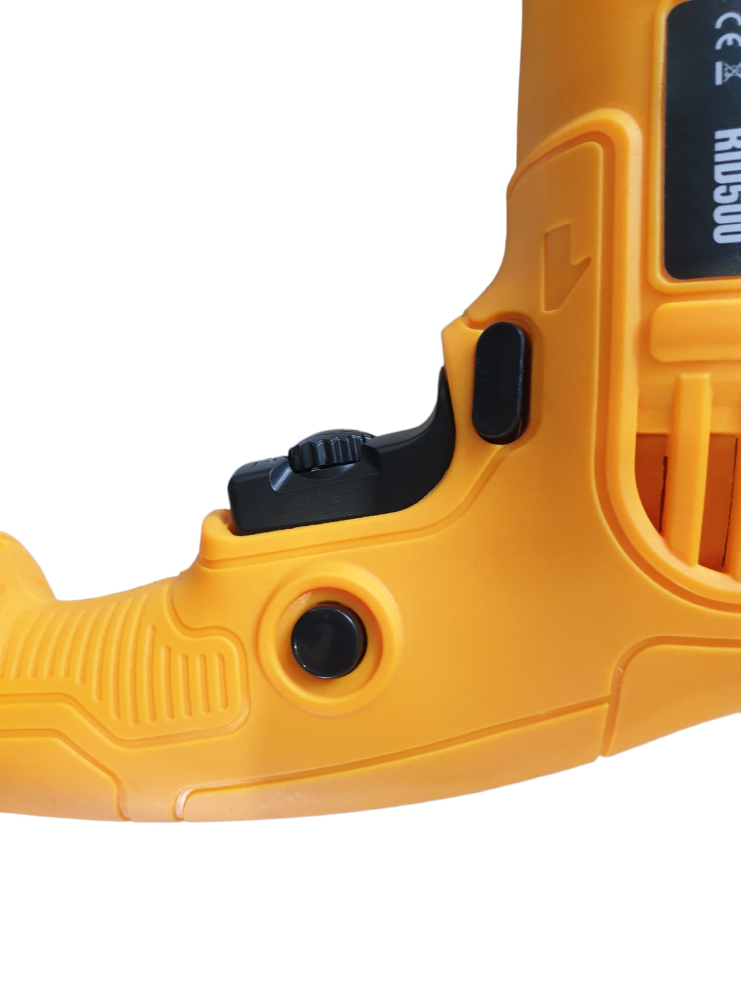 Designul ergonomic al bormasinii RID500 asigura confort in utilizare si o prindere stabila, reducand oboseala mainilor in timpul lucrului indelungat. Butonul de pornire/oprire bine plasat si reglajul usor de folosit al vitezei de rotatie va permit sa controlati instrumentul cu usurinta, oferindu-va precizia necesara pentru rezultate profesionale.