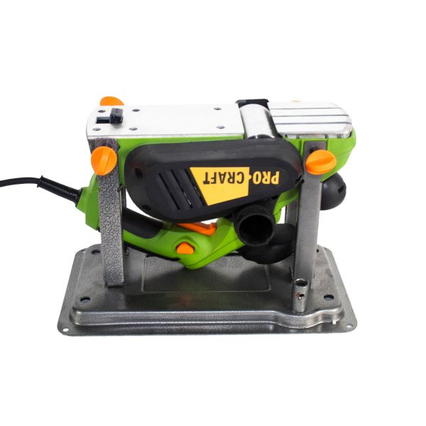 Rindea stationara Procraft PE1650 cu suprafata de lucru de 250 mm x 82 mm cu doua cutite de la producatorul de scule hobby si semiprofesioanle Procraft. In pozitie fixa de lucru scula electrica este integrata intr-un suport cu patru puncte de sprijin si talpa de 290 mm x 165 mm din aliaj metalic cu grosime de 2 mm. Odata fixat cu suruburi in cele 4 colturi aceasta nu se va deforma ca urmare a procesului de lucru si vibratiilor rezultate.