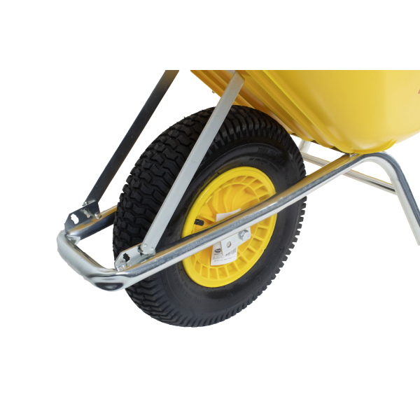Scheletul este si el la fel de dur zincat de grosime 2 mm ce sprijina cuva atat din fata cat si din spate cu piese zincate mobile. Roata cu dimensiune 5.00 – 8 poliuretanica cu inalt grad de rezistenta in folosirea pe teren accidentat la capacitate maxima de umplere. Cuva se fixeaza in cinci suruburi in format 4+1(patru suruburi conecteaza cuva de scheletul roabei si al cincilea – de suportul frontal).