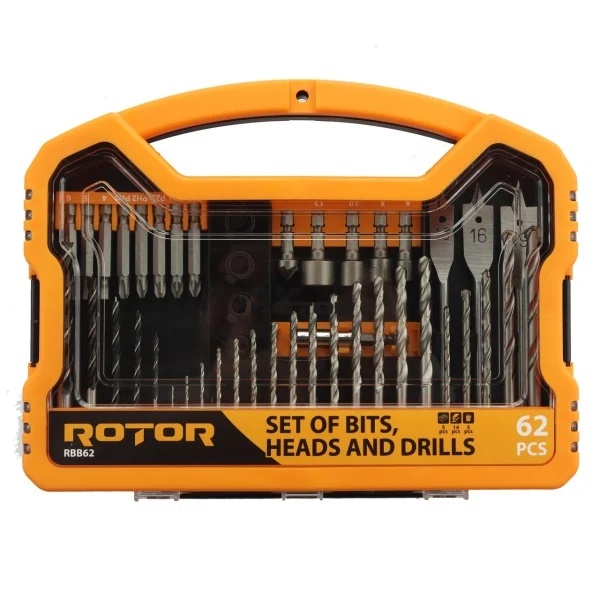 Setul RBB62 este un pachet complet pentru profesionisti si amatori de bricolaj, fiind echipat cu toate sculele necesare pentru o gama larga de lucrari. Acesta contine 62 de piese, incluzand burghie HSS de inalta calitate pentru metal, burghie pentru zidarie si lemn, biti pentru surubelnita, chei tubulare, limitatoare de adancime pentru burghie, precum si un zencuitor si suport magnetic pentru organizare. Toate piesele sunt fabricate din materiale durabile, precum otelul CRV6150 si otelul 50BV30, pentru performante optime in utilizare.
