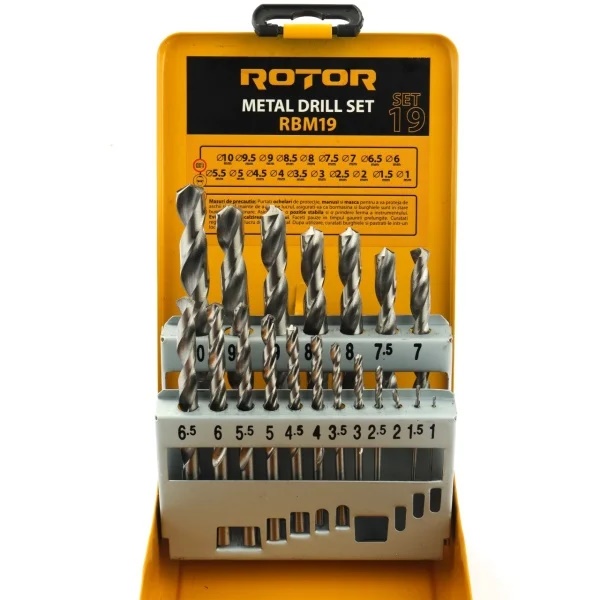 Setul RBM19 de la ROTOR include 19 burghie de inalta calitate, concepute special pentru a lucra cu metale. Fiecare burghie este fabricata din material durabil HSS (High-Speed Steel) pentru a asigura o taiere precisa si eficienta, chiar si in cele mai dure materiale. Aceste burghie sunt ideale pentru perforarea metalului, fiind disponibile in dimensiuni variate, de la 1 mm pana la 10 mm, pentru a se potrivi nevoilor dumneavoastra specifice.