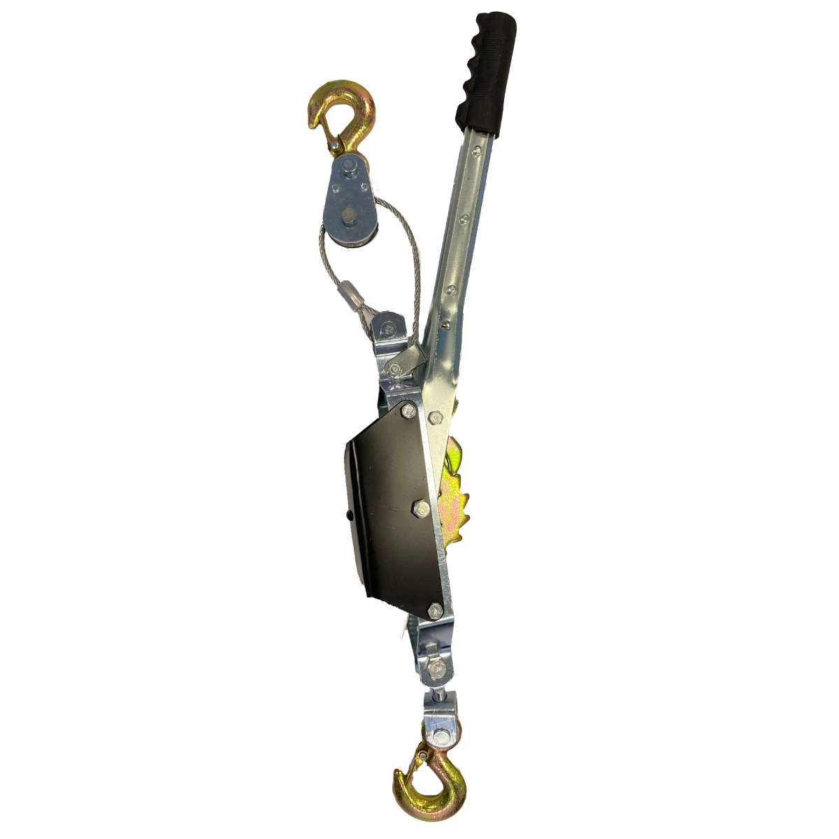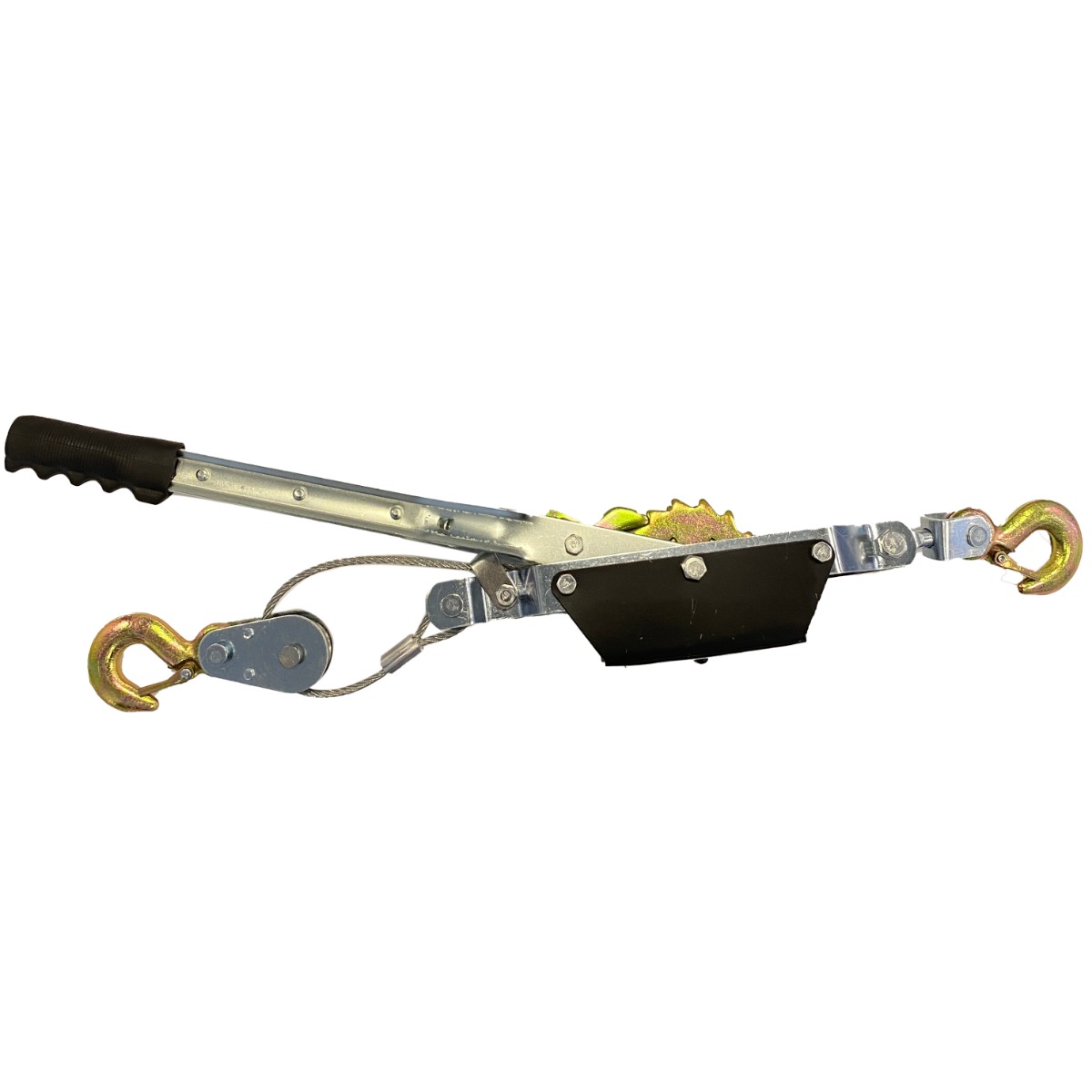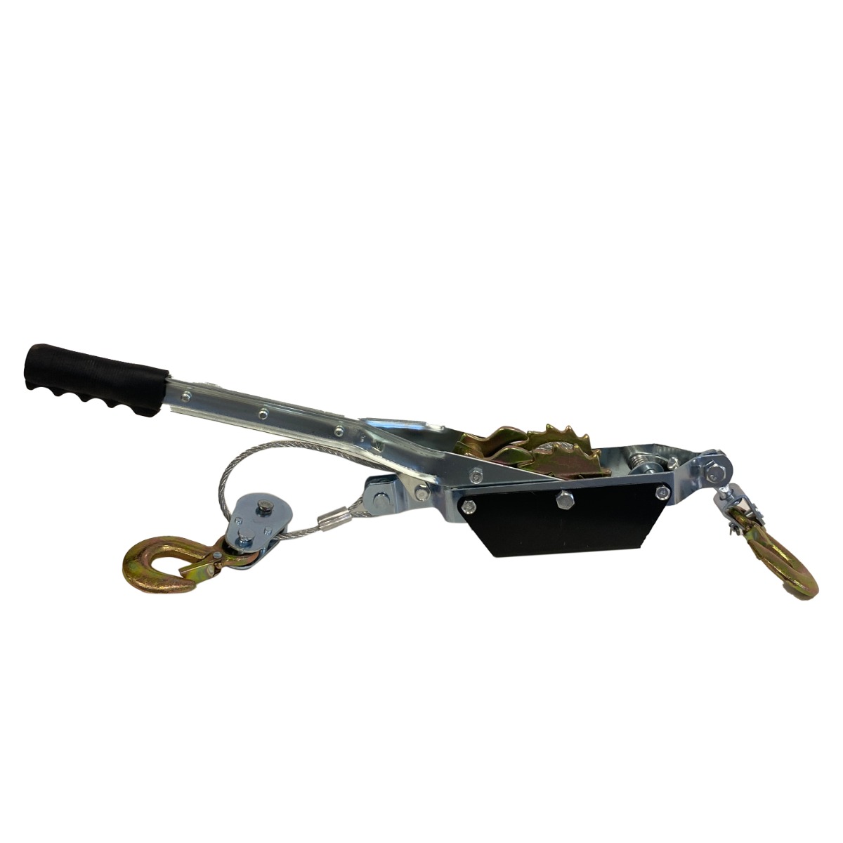 Acest troliu cu cablu orizontal, actionat manual este fabricat din fier pentru rezistenta suplimentara si rigiditate, necesare atunci cand tractati materiale grele.