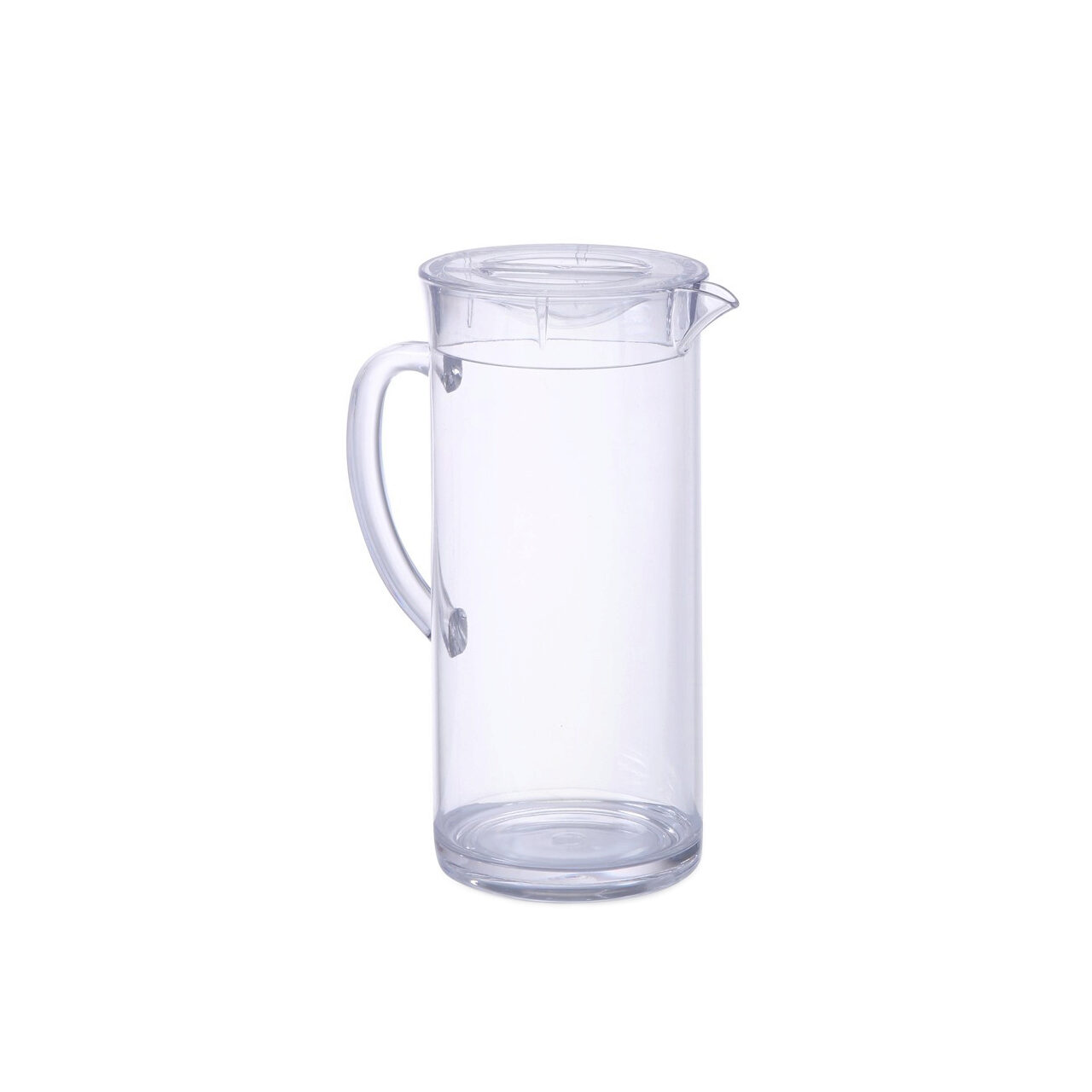 Carafa suc. Model simplu din plastic transparent rezistent la zgarieturi ( MS – Metacrilat Stiren), cu capac. Se poate spala la masina de spalat vase.