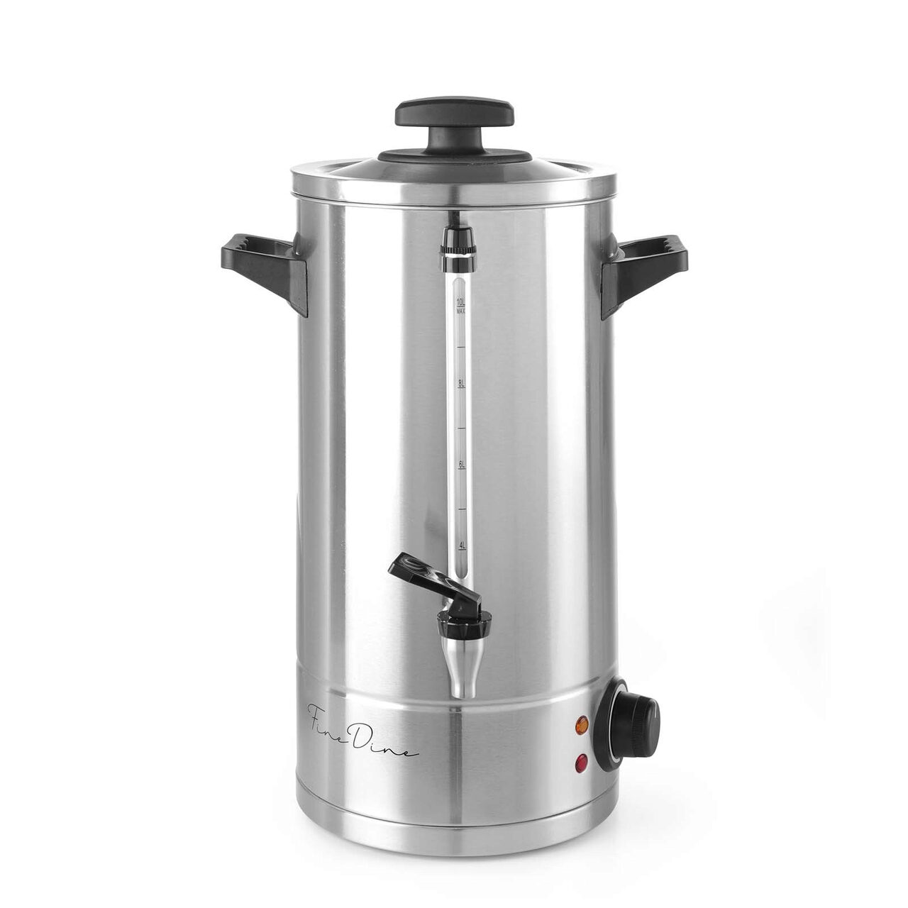 Boiler profesional pentru bauturi fierbinti 10 litri, Fine Dine by Hendi, inox, 1300 W, termostat reglabil, temperatura 30 C - 110 C, sistem inchidere "Twist-lock", robinet anti-picurare, 312x29x50 cm