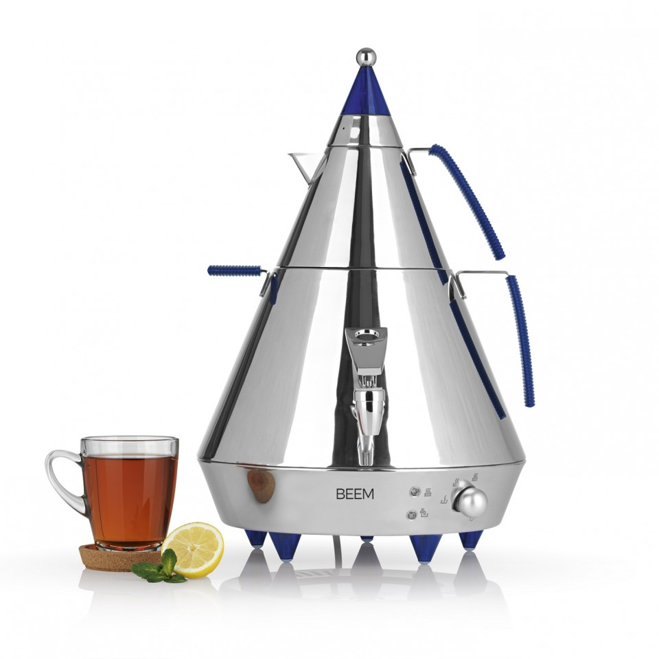 BEEM Samovar Pyramid A4 - 4 l convinge prin exteriorul sau modern in forma de piramida, precum si prin valorile sale interioare. Doua bobine puternice de incalzire cu o putere totala de 2500 W asigura o incalzire extrem de rapida. Deoarece aroma de ceai se dezvolta cel mai bine la aproximativ 98 ° C, spirala de 500 W mentine temperatura optima cu cea mai mare eficienta energetica posibila.